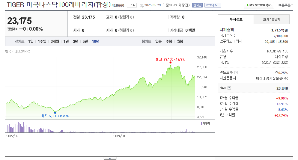 1. TIGER 미국나스닥100레버리지(합성) ETF (미래에셋자산운용)